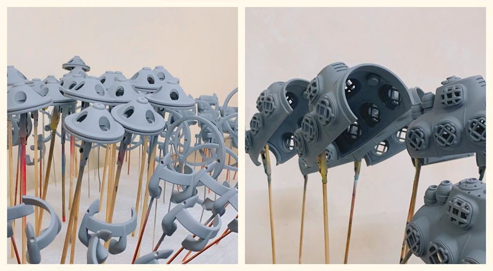 以公仔來說,打樣階段通常會使用 3D 列印製作,快速列印出的實體樣不僅可提供客戶做確認,完成的打樣也可直接拿去進行翻模,也就是樹脂、矽膠等做出外膜,將內部的原型取出後,就會留下外模,可作為後續量產灌注的模具。